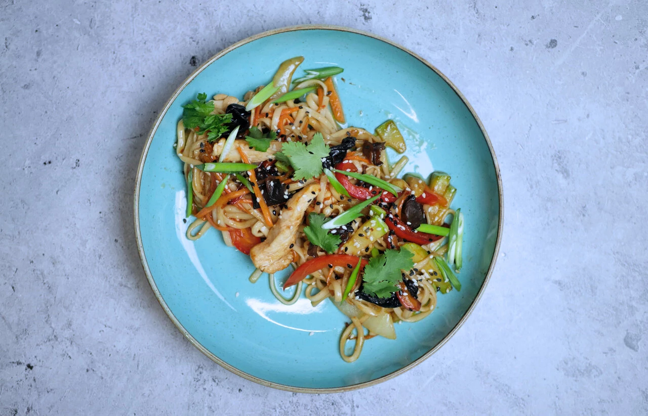 Удон с курицей и грибами