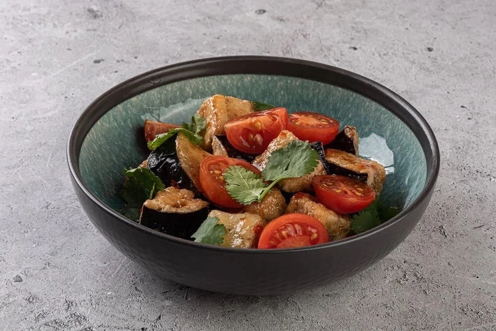 Теплый салат с баклажанами в соусе тайский чили